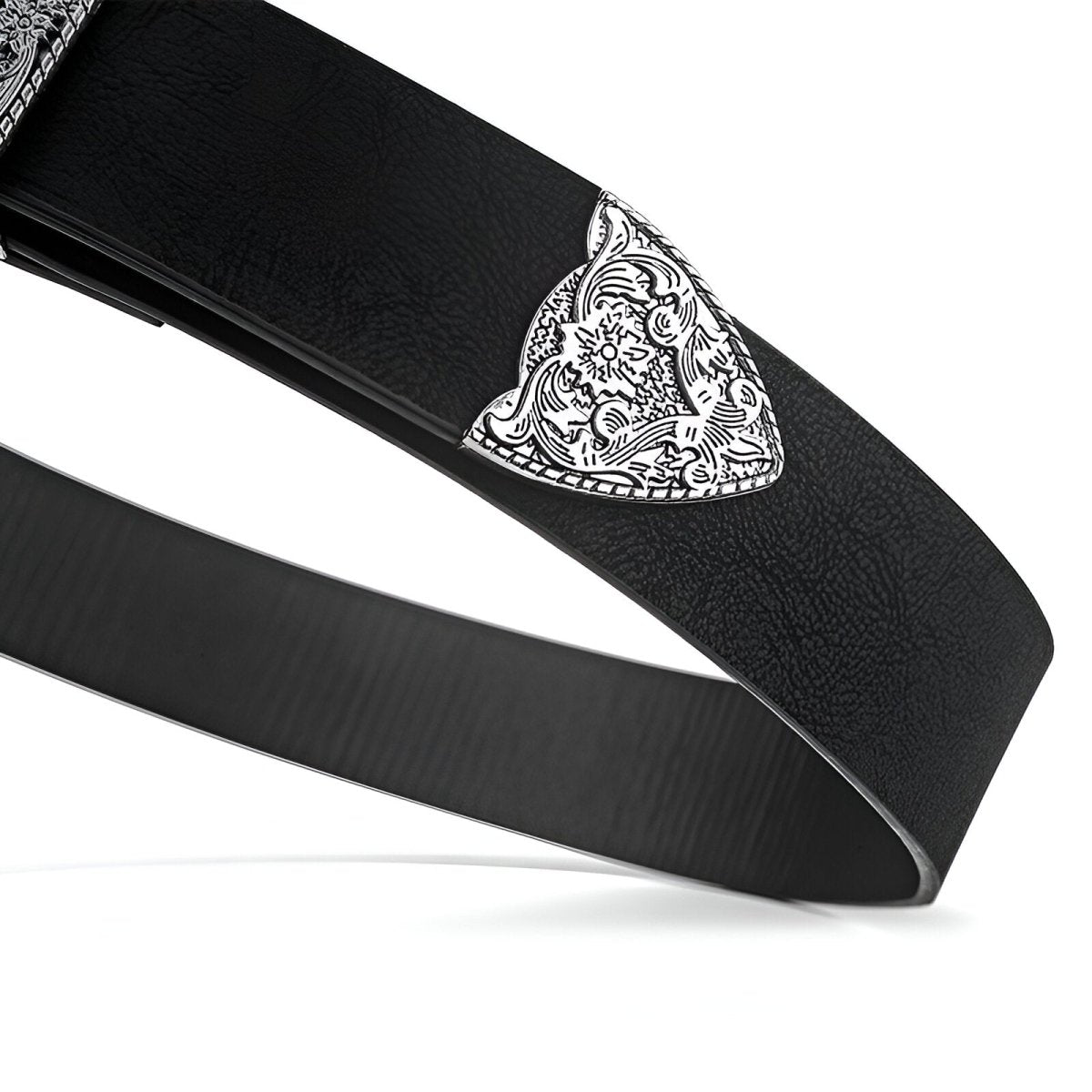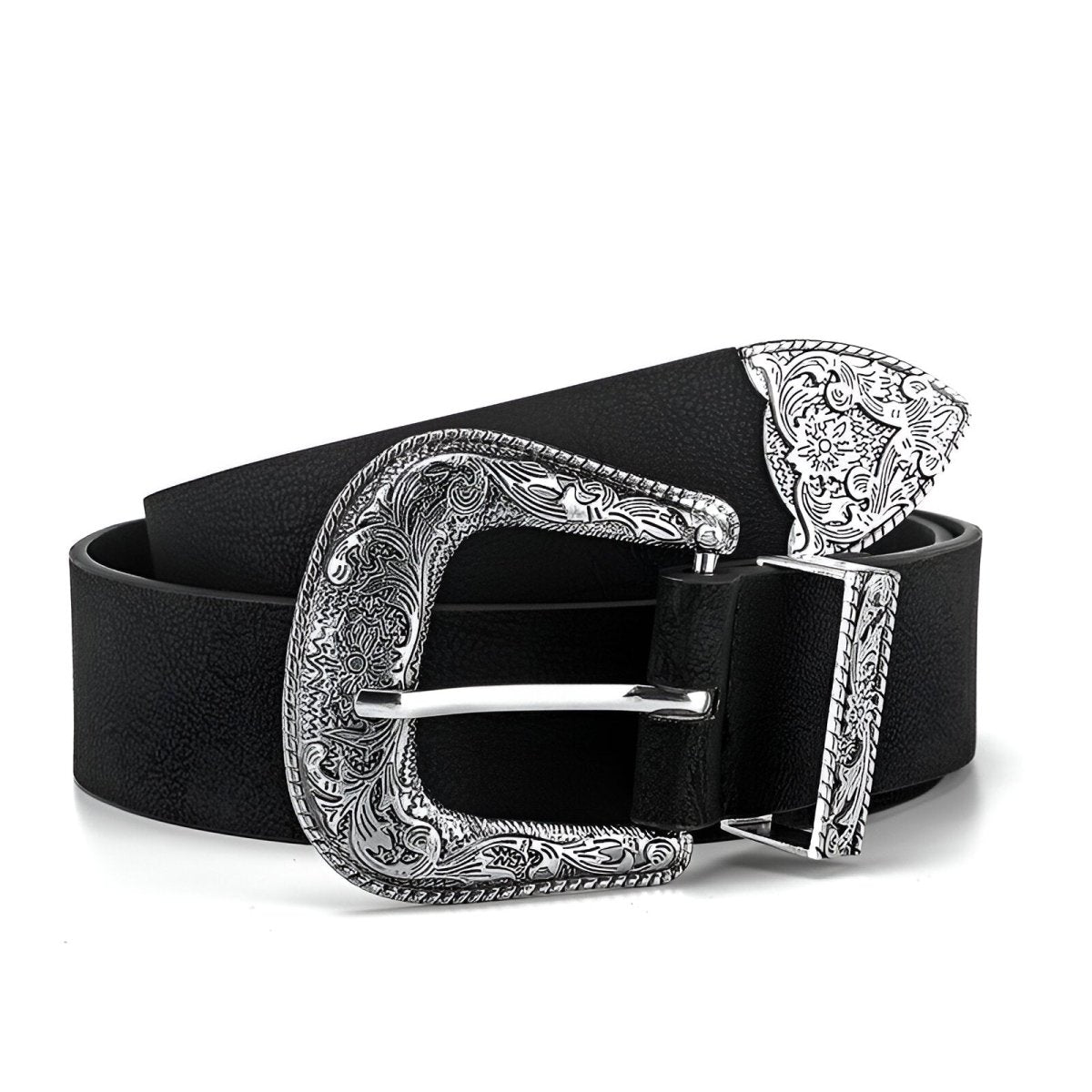 - Buckle: Square silver alloy, pin with engraved detailing
