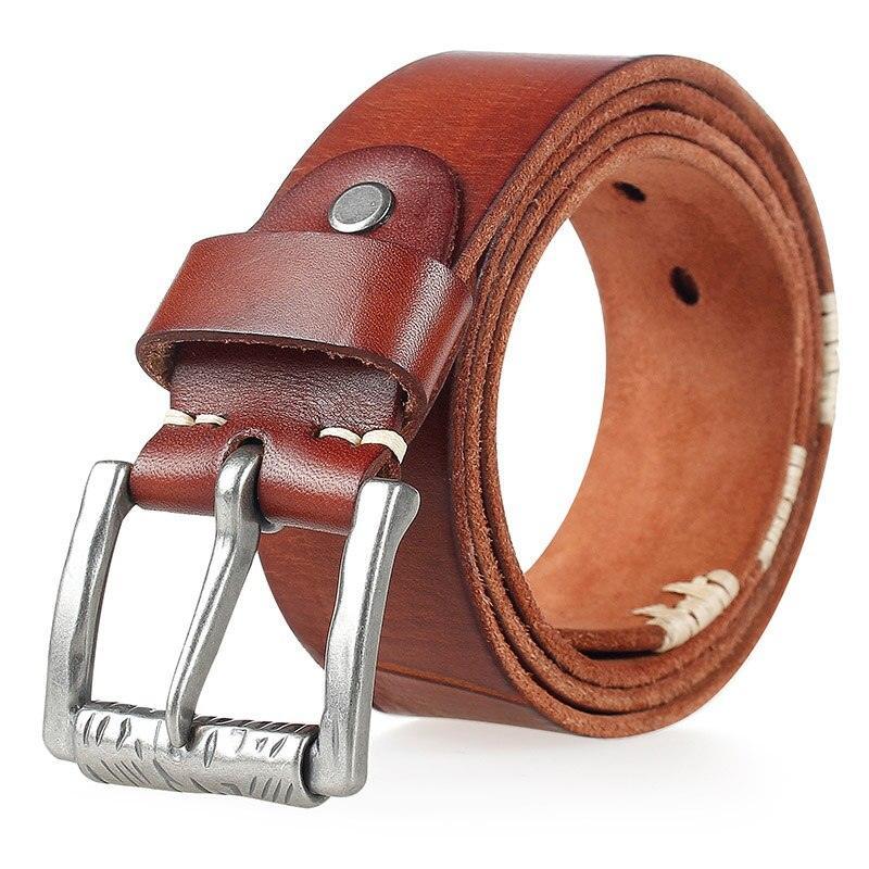 Zictor's Kensley is a men's leather belt crafted in full-grain leather with mineral tanning for enduring quality. The aged patina and subtle stitched detailing reflect heritage craftsmanship with a contemporary edge. The strap is 3.8 cm (1.5 in) wide and 3 mm (0.1 in) thick, delivering a refined silhouette that sits unobtrusively at the waist. The rectangular silver alloy buckle measures 4.0 cm × 5.5 cm (1.6 in × 2.2 in) and features a roller closure for reliable function. Available in cafe, black, brown, and camel tones; limited availability, designed for longevity and everyday prestige.