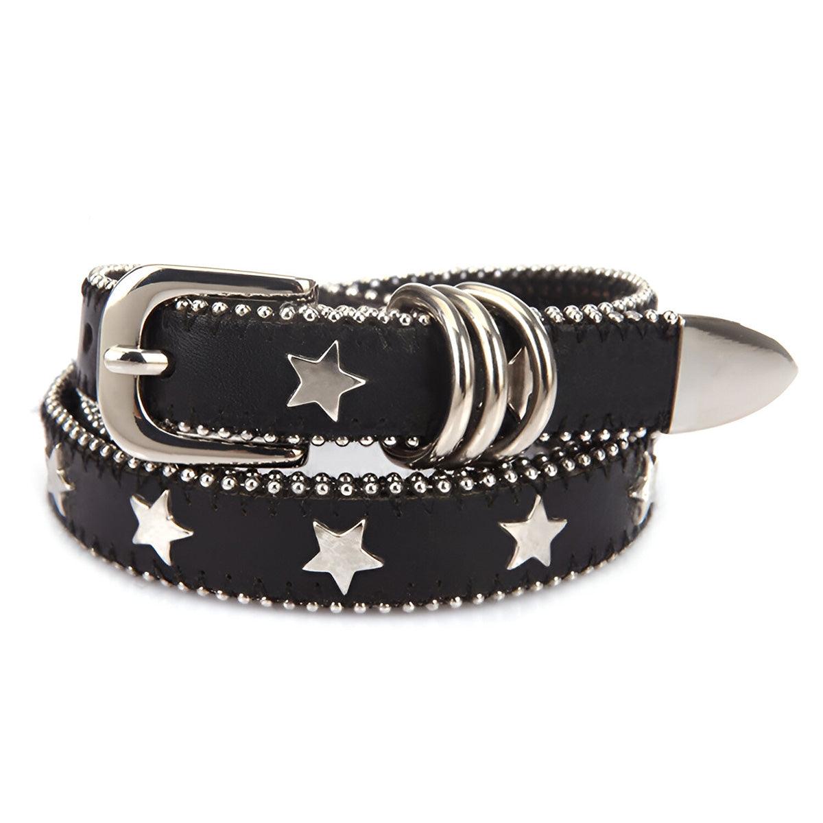 Black Belt With Star Rivets For Women - Model Faris