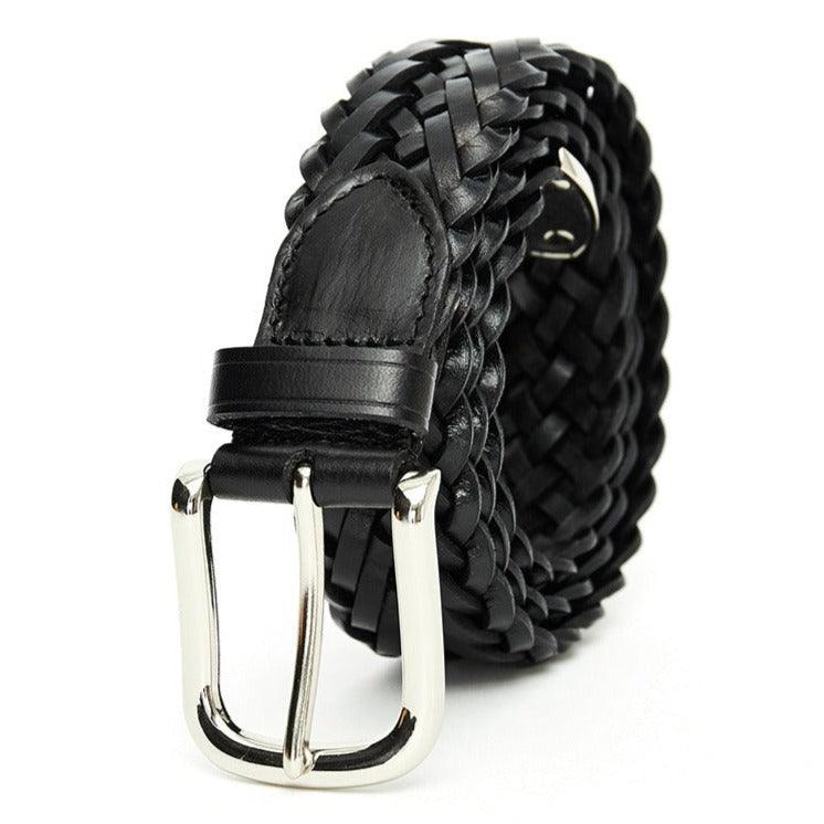 From Zictor, the Dru braided belt blends traditional craftsmanship with a contemporary eye for detail. This braided crust cowhide belt is mineral-tanned for a refined patina, offering artisanal heritage and lasting durability. In deep navy blue, Dru ages gracefully and both suits tailored looks and casual ensembles. Limited in availability, it elevates outfits with quiet confidence. Strap width 3.6 cm (1.4 in); thickness 3 mm (0.1 in). Buckle: silver-tone rectangular alloy-prong, 6.0 cm × 4.0 cm (2.4 in × 1.6 in).