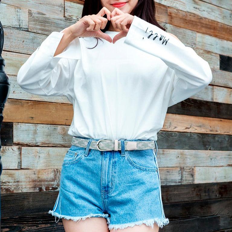 Mint Green Braided Elastic Belt For Women - Model Aubree